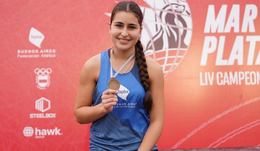 Quien naciera en la escuela municipal bajo el ala del Prof. Mauro Cabrera, y sostenga un intenso entrenamiento diario junto a la entrenadora Juliana Jové, más la asistencia del especialista marplatense, Federico Acha, estampó un maravilloso salto de 11.25 para arrebatar el primer lugar del podio y proclamarse campeona en tierras marplatenses.