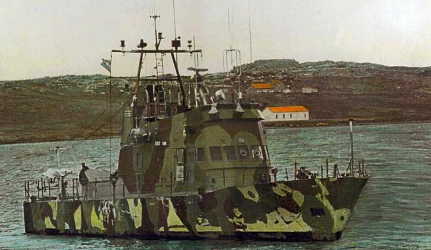 El Guardacostas “Islas Malvinas” fue el primero en entrar en combate el 1° de mayo de 1982, cuando se encontraba fondeado en la bahía de la Anunciación y fuera sobrevolado por un helicóptero Sea King inglés para luego ser atacado con fuego de ametralladora. Se estaba librando el 1°COMBATE AERONAVAL DE LA HISTORIA CONTEMPORÁNEA ARGENTINA. El Guardacostas responde con armamento policial repeliendo el ataque
